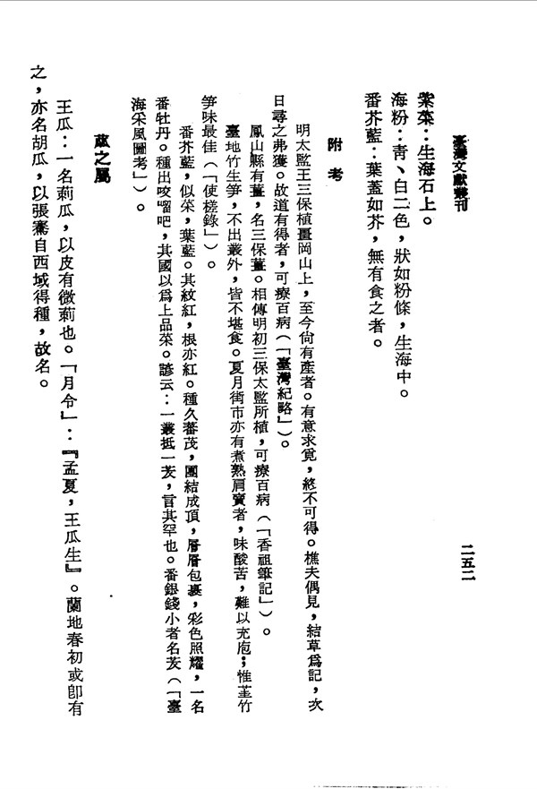 冬瓜性冷 噶瑪蘭廳志卷六 台灣文獻史料叢刊 -