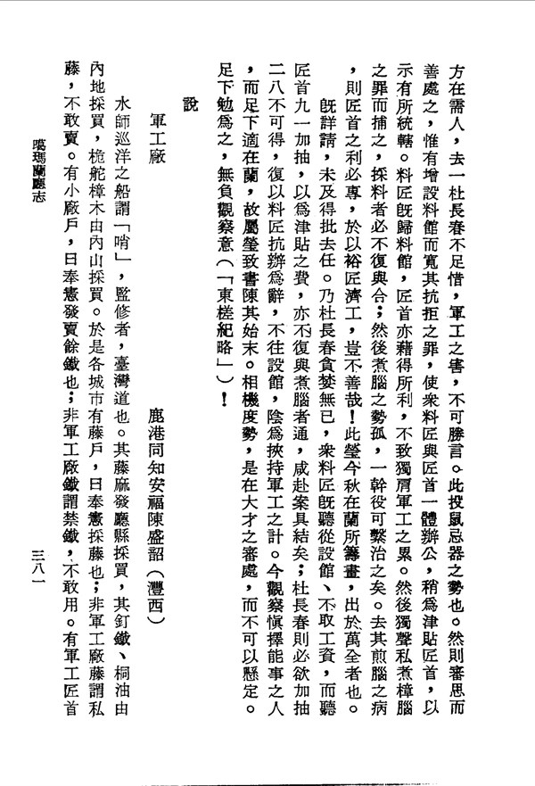 杜長春私營樟腦 噶瑪蘭廳志卷八 台灣文獻史料叢刊 -