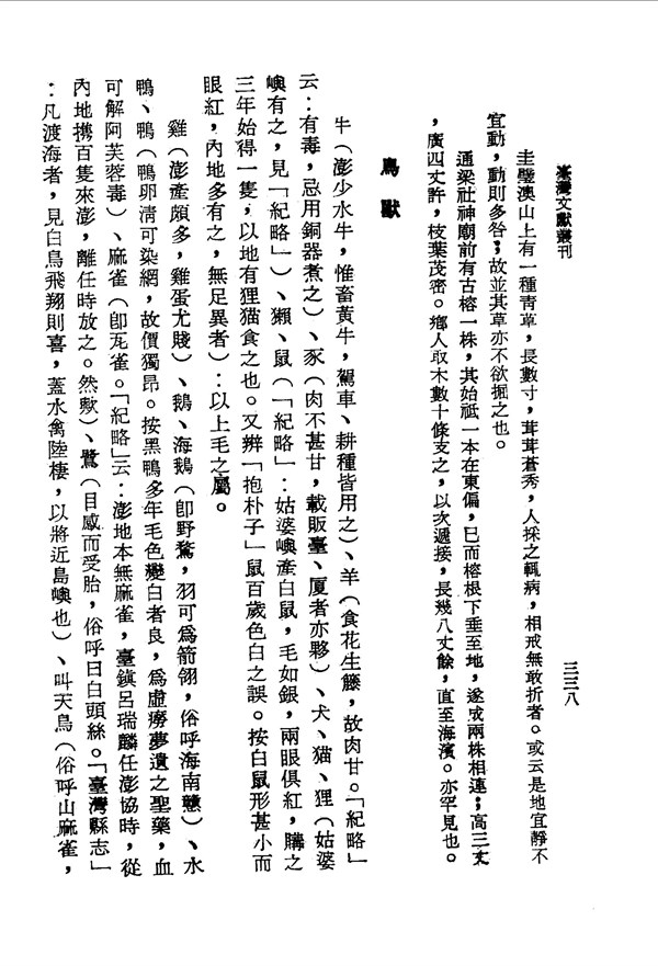 羊有毒,不可用銅器來烹煮 澎湖廳志卷十 台灣文獻史料叢刊 -