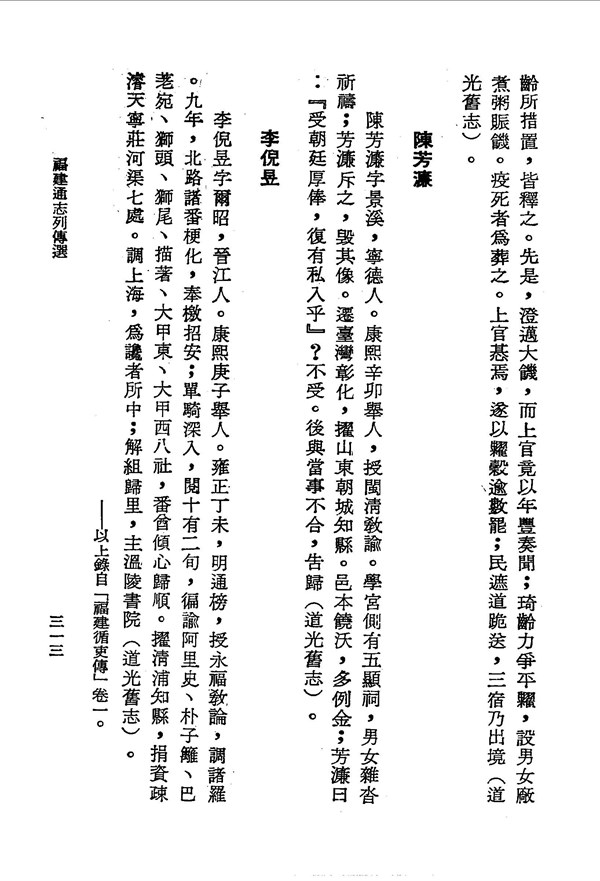 敬裕有胃病 福建通志列傳選卷五 台灣文獻史料叢刊 -