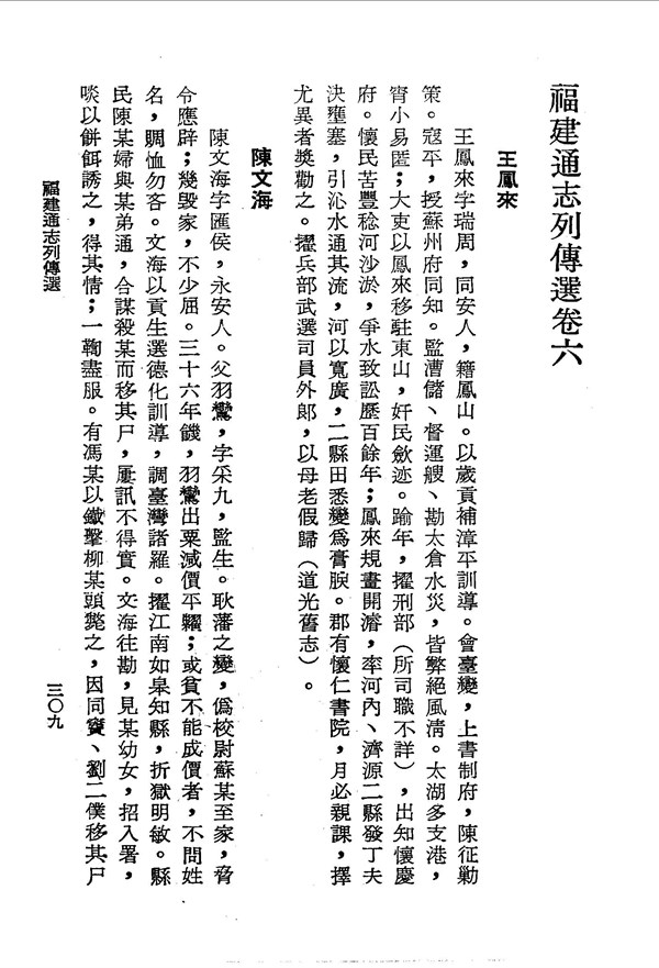 渡台灣海峽時暈船嘔吐 福建通志列傳選卷五 台灣文獻史料叢刊 -
