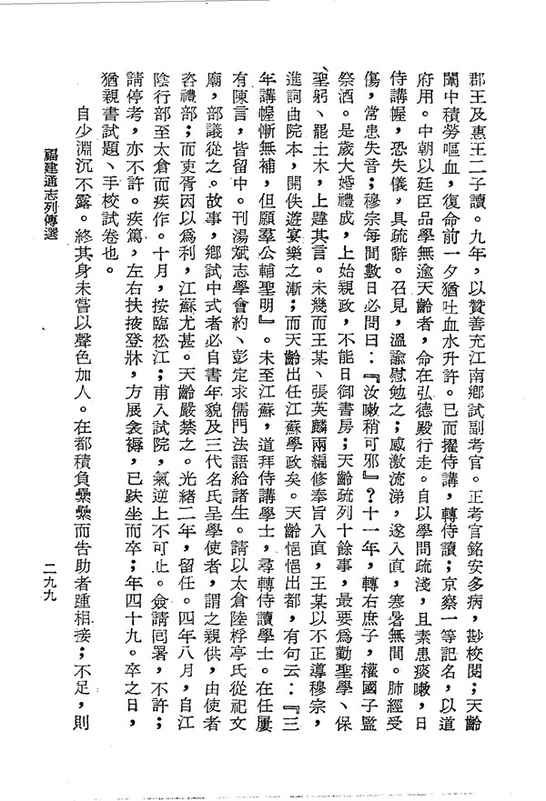 際亮患病仍勉強出行至京城 福建通志列傳選卷六 台灣文獻史料叢刊 -