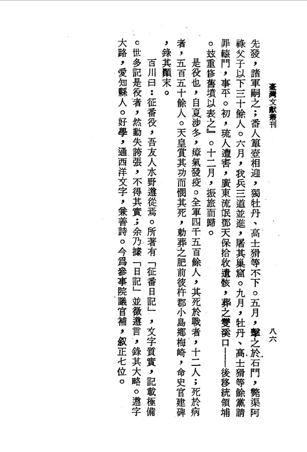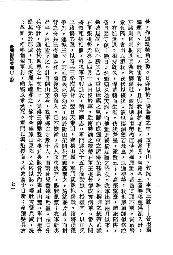 先從臺灣撤退的軍隊是染疫症最嚴重的 臺灣海防並開山日記 台灣文獻史料叢刊 -
