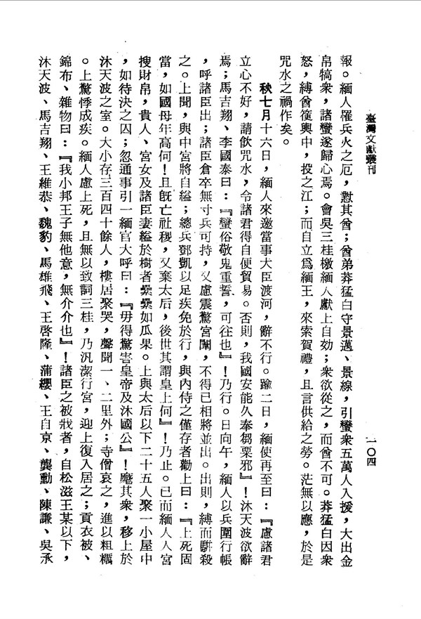 皇上因受驚而患病 小腆紀傳目錄 台灣文獻史料叢刊 -