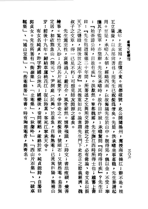 文襄公患癰疾 清先正事略選卷二 台灣文獻史料叢刊 -
