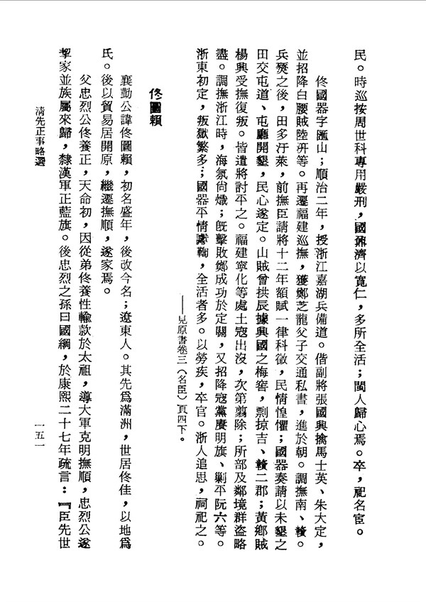 佟國器因勞累過度而過世 清先正事略選卷二 台灣文獻史料叢刊 -