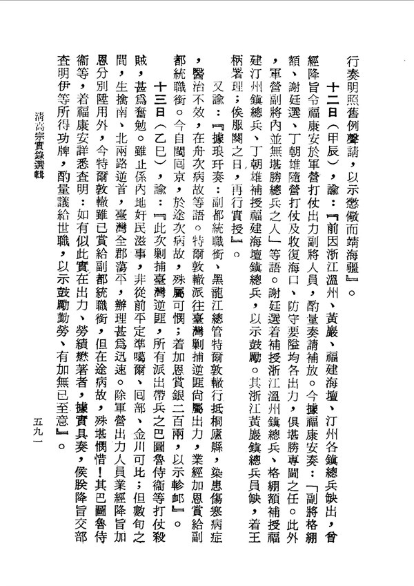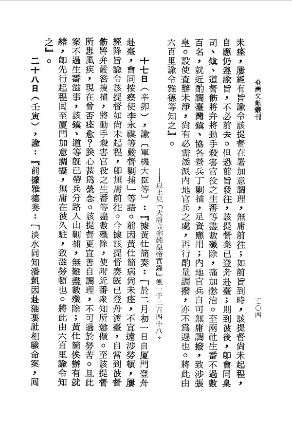 士兵不習慣台灣濕熱天氣而紛紛患病 清高宗實錄選輯選輯(三) 台灣文獻史料叢刊 -