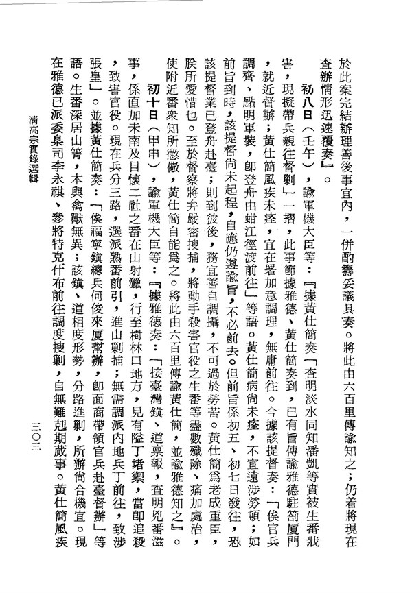 黃仕簡患上風疾 清高宗實錄選輯選輯(二) 台灣文獻史料叢刊 -