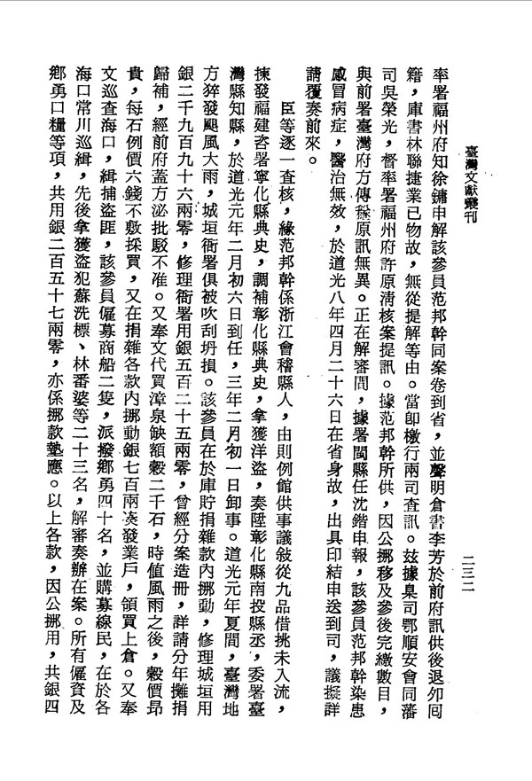 范邦幹因感冒而死亡 臺案彙錄乙集卷三 台灣文獻史料叢刊 -
