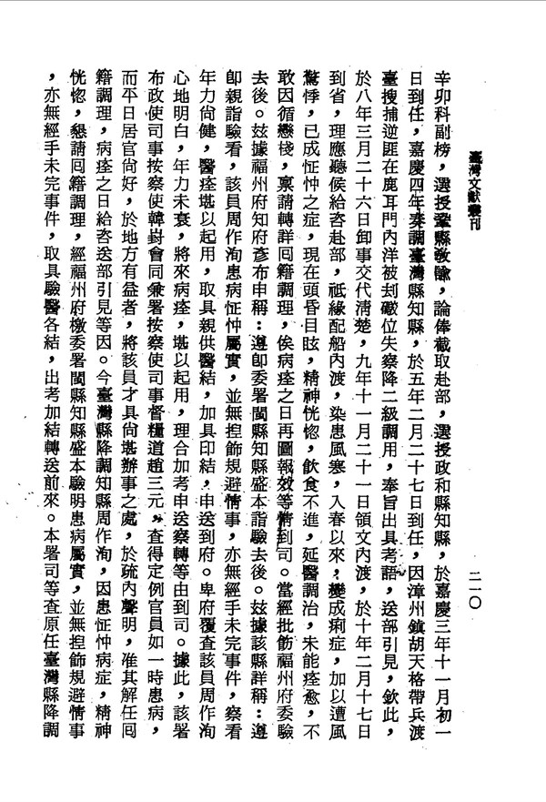 臺灣府臺防同知因風濕痰湧而死亡 臺案彙錄乙集卷三 台灣文獻史料叢刊 -