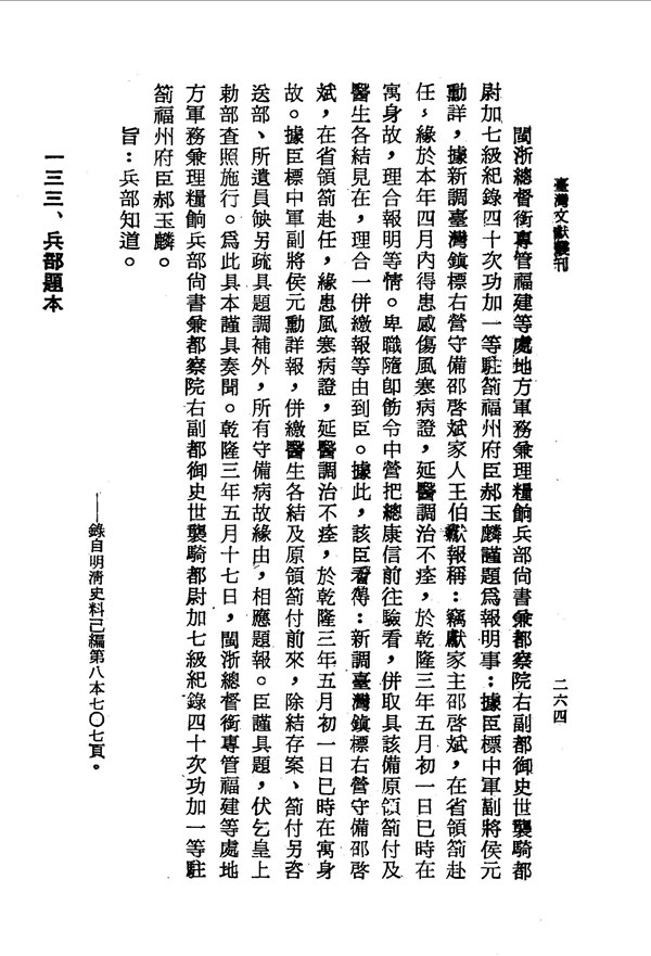 邵啟斌感染風寒而死亡 臺案彙錄乙集卷四 台灣文獻史料叢刊