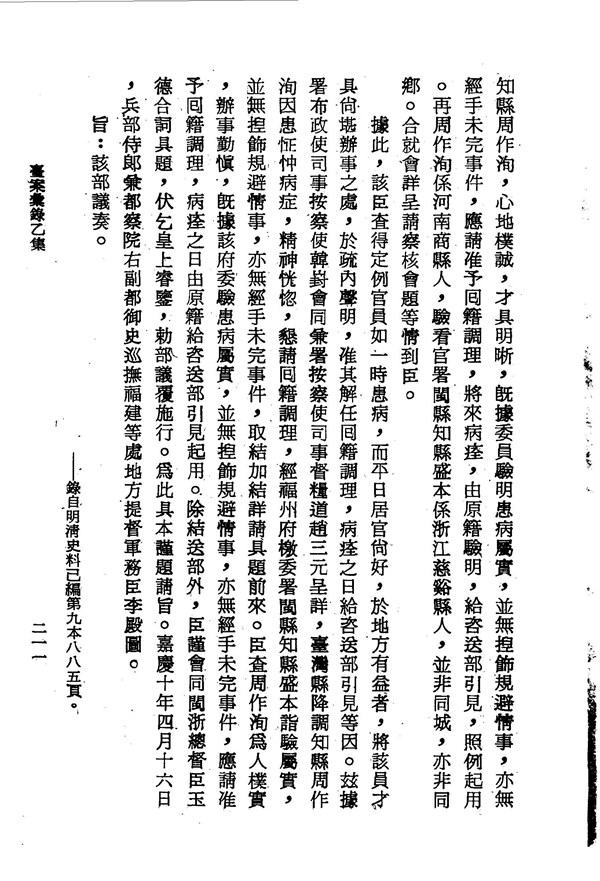 周作洵患怔忡病而精神恍惚 臺案彙錄乙集卷三 台灣文獻史料叢刊 -