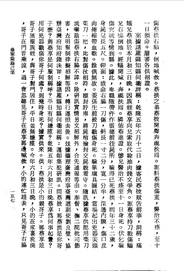 蔡拱因為受傷而死亡的過程 臺案彙錄己集卷四 台灣文獻史料叢刊 -