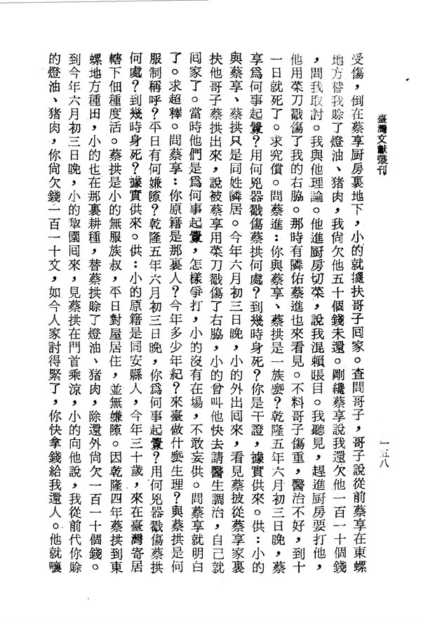 訊問蔡拱受傷的過程 臺案彙錄己集卷四 台灣文獻史料叢刊