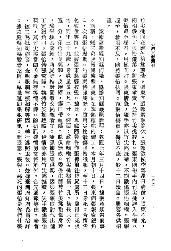 訊問張東張怡受傷死亡的案件 臺案彙錄己集卷四 台灣文獻史料叢刊 -