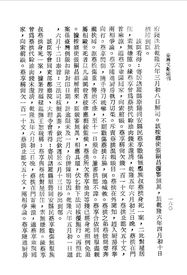 蔡拱受傷死亡的經過 臺案彙錄己集卷四 台灣文獻史料叢刊 -