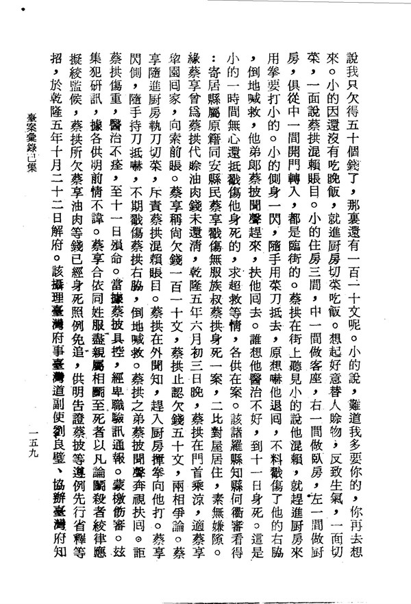 訊問蔡享蔡拱受傷死亡的案件 臺案彙錄己集卷四 台灣文獻史料叢刊 -