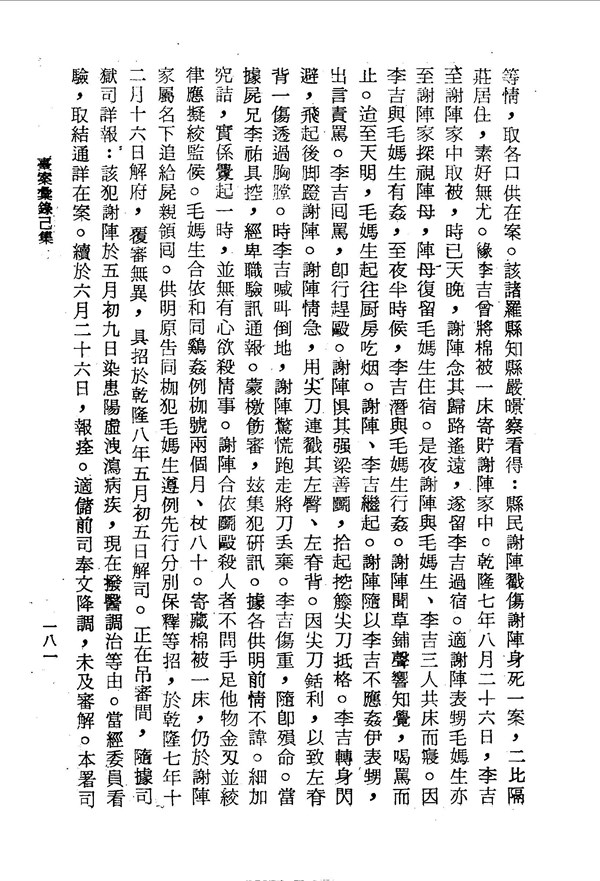 訊問謝陣李吉因受傷而死亡的案件 臺案彙錄己集卷四 台灣文獻史料叢刊 -