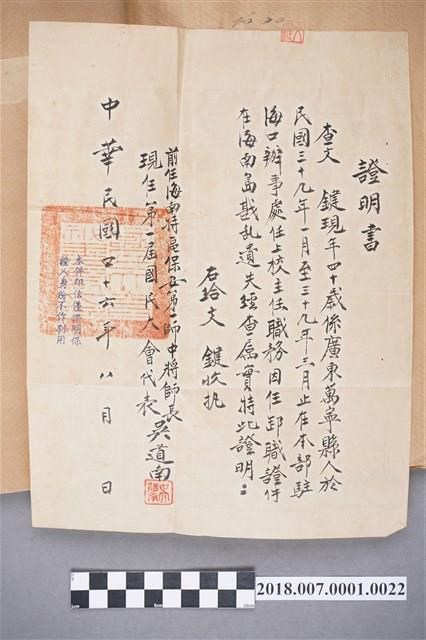 文鍵臺灣省立臺中高級家事商業職業學校教職人員聘派用審查證明文件集 -