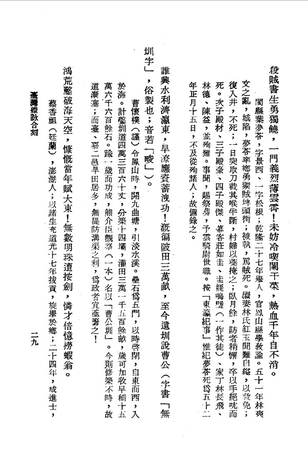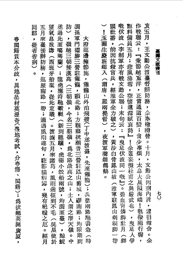 諸軍多感瘴癘,宋鎮軍亦病不起 臺灣雜詠合刻 台灣文獻史料叢刊 -