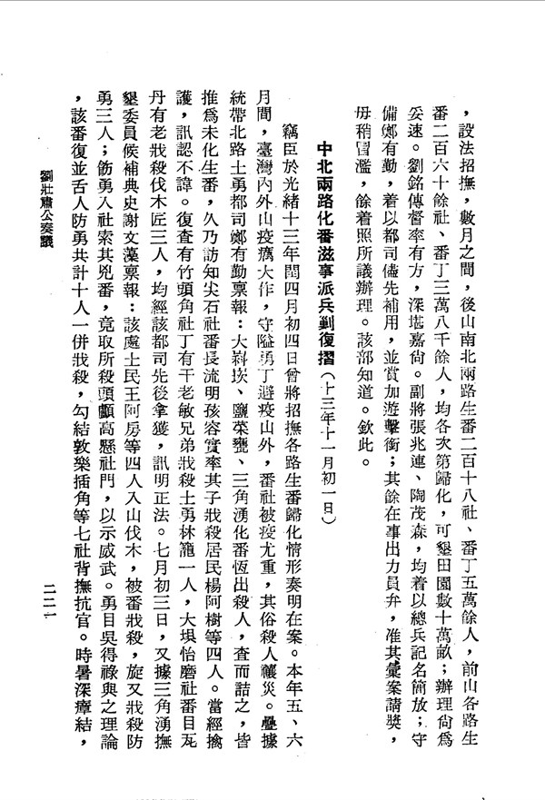方策勛復同銘、健兩軍,勦生番後瘴疾復作 劉壯肅公奏議卷九 台灣文獻史料叢刊 -