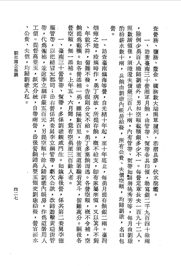 臺灣疫癘時作,勇丁病故後少給存餉 劉壯肅公奏議卷十 台灣文獻史料叢刊 -