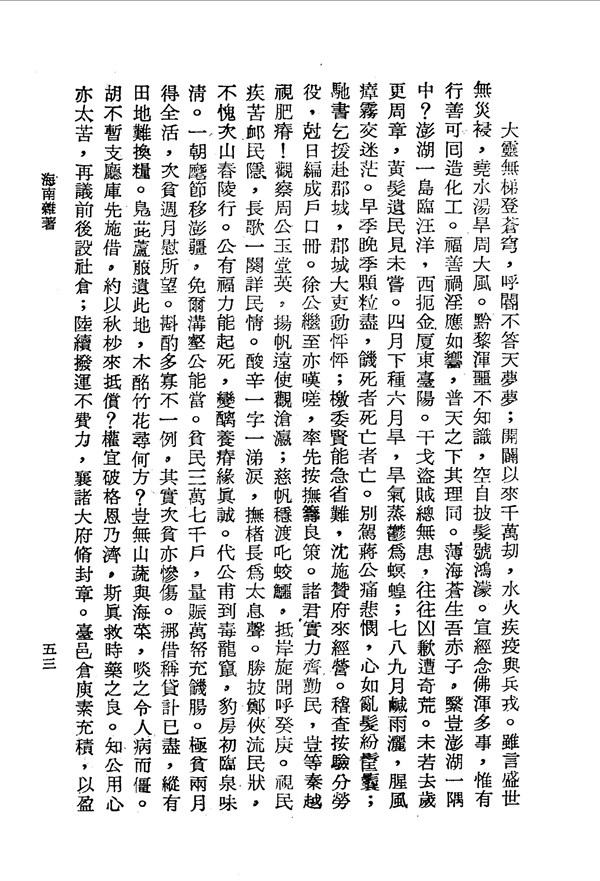 澎湖自開闢後,多疾疫、兵戎及歉收之荒 海南雜著 台灣文獻史料叢刊 -