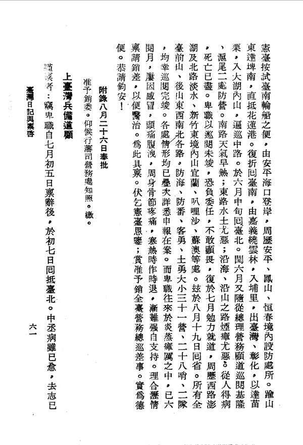 來於炎蒸瘴炙中,從人先後道病 臺灣日記與禀啟卷二 台灣文獻史料叢刊 -