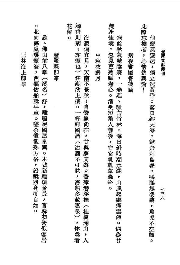 其地山枯水冷,人雖能到,多水土不服,生還者不多 重修臺灣府志卷十五 台灣文獻史料叢刊 -