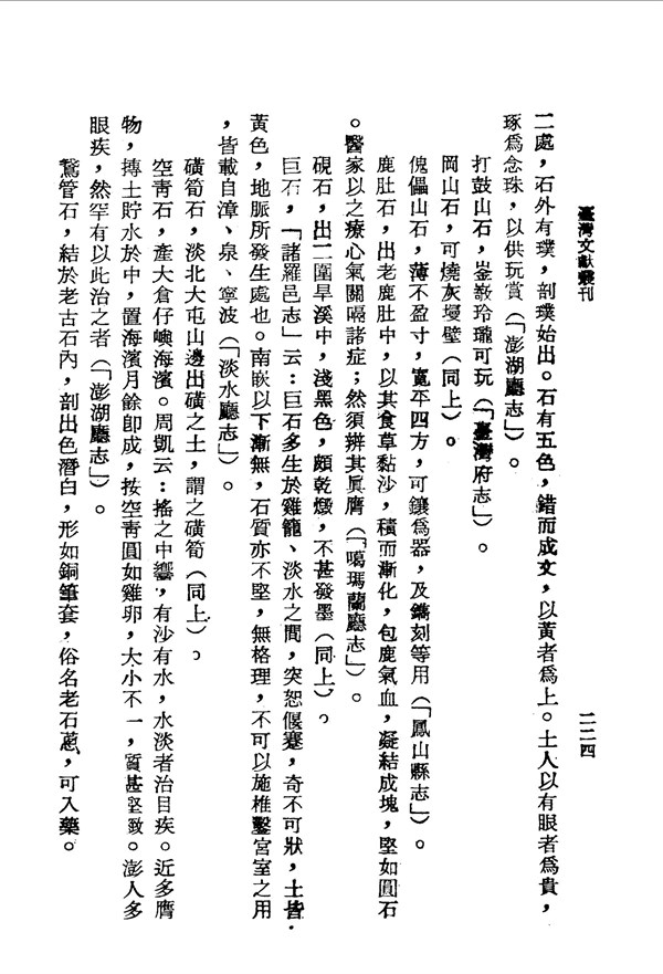 空青石可治眼疾 臺灣通志 台灣文獻史料叢刊 -