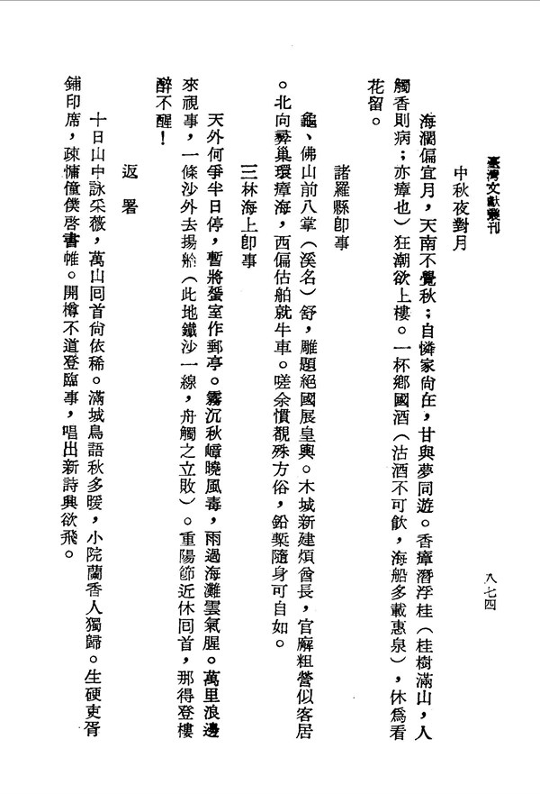 詩作敘述人接觸到桂樹的香氣會生病 續修臺灣府志卷二十四 台灣文獻史料叢刊 -