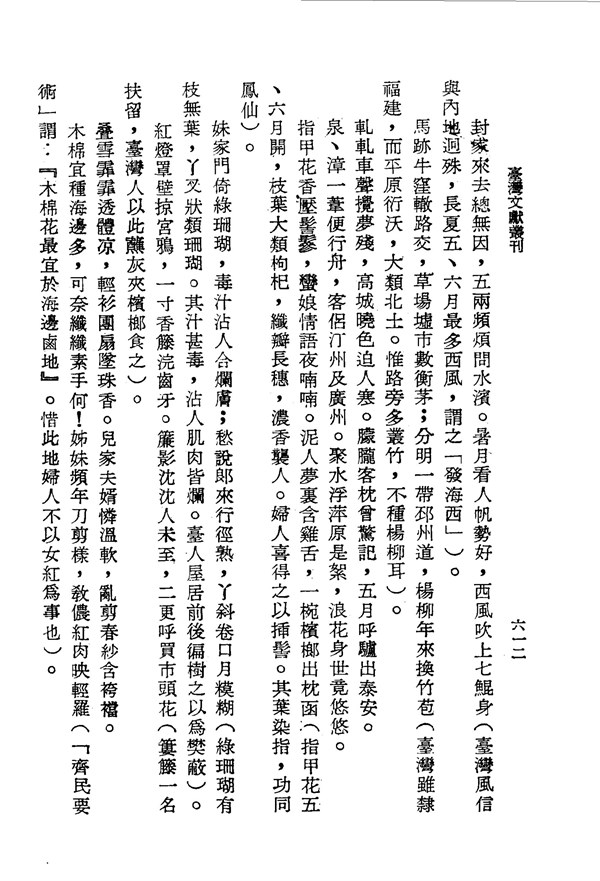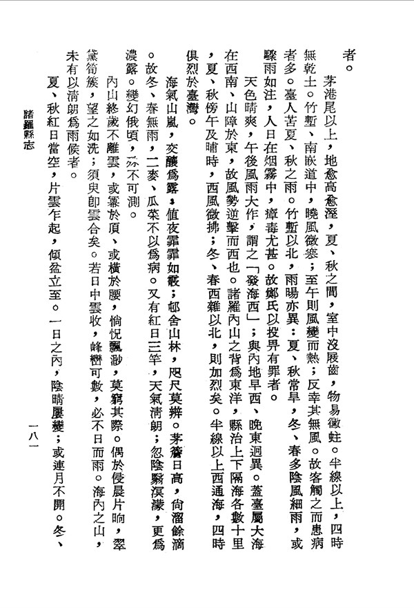 臺灣天氣多變,需保持溫暖不受寒,生病機會才會少 諸羅縣志卷八 台灣文獻史料叢刊 -