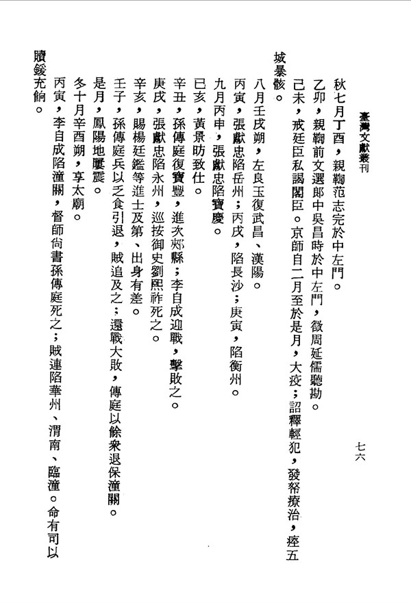 京師疫症盛行 明史選輯卷二 台灣文獻史料叢刊 -