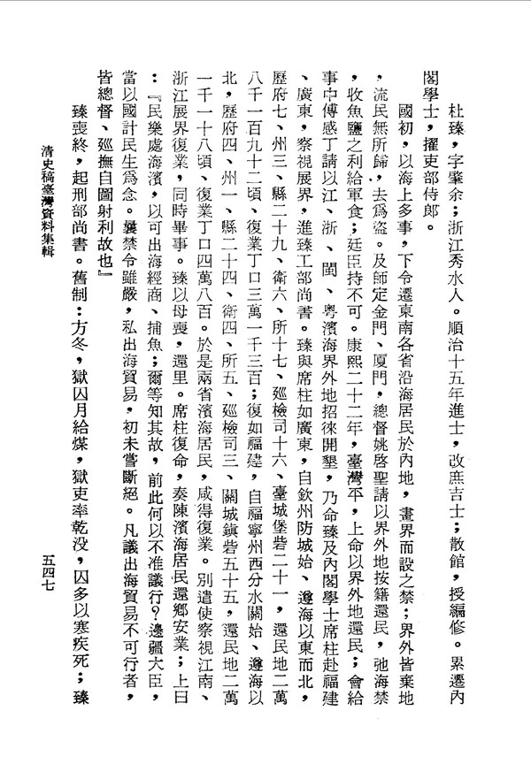 寒冬時囚犯多因寒疾死亡 清史稿臺灣資料集輯 台灣文獻史料叢刊 -