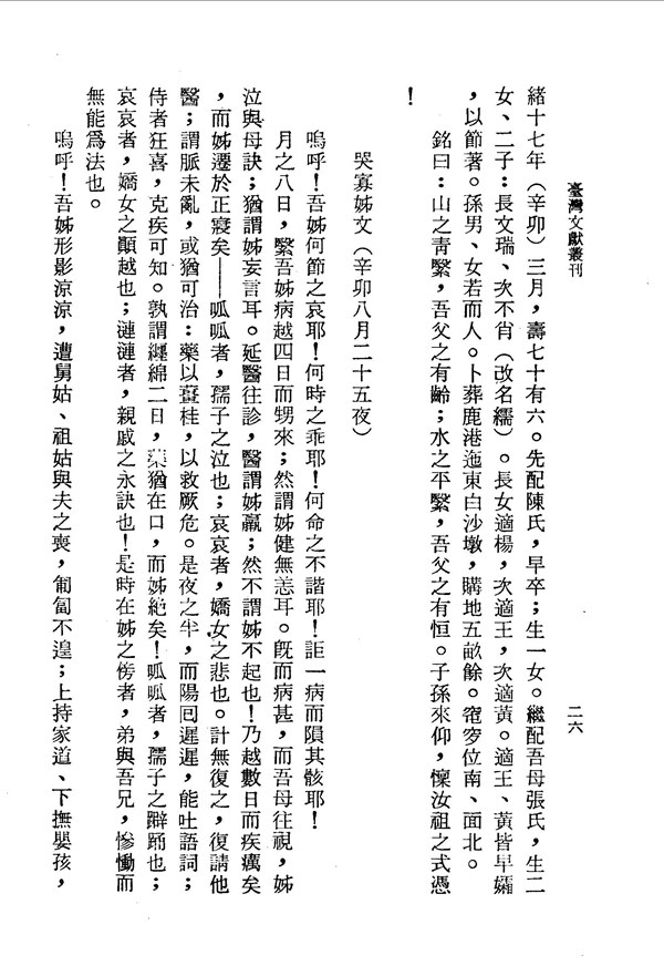 姊姊身體孱弱,感染疫症,用薑桂能暫緩危急狀況 寄鶴齋選集 台灣文獻史料叢刊 -