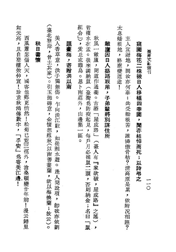 台灣為防疫而捕鼠 窺園留草卷一 台灣文獻史料叢刊 -