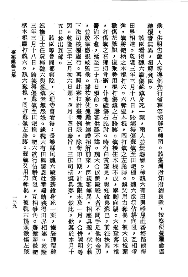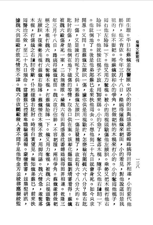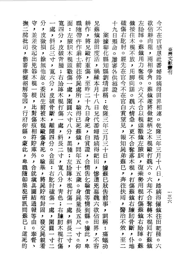 蘇鎮因為受傷而死亡的過程 臺案彙錄己集卷四 台灣文獻史料叢刊 -