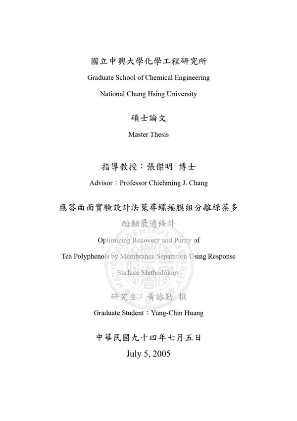 應答曲面實驗設計法蒐尋螺捲膜組分離綠茶多酚類最適條件 -