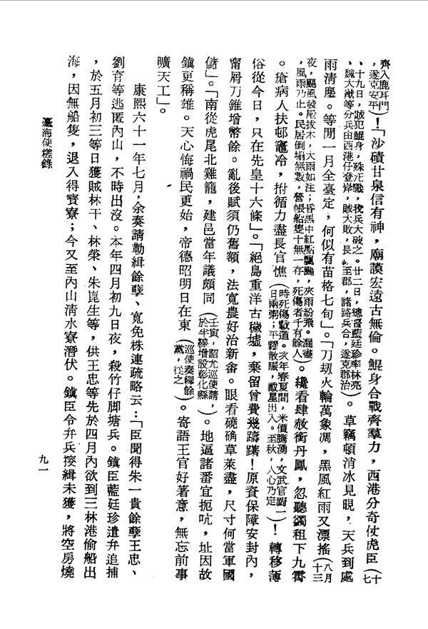 文武官廚平糶散賑,戴星出入人心乃定 臺海使槎錄卷四 台灣文獻史料叢刊 -
