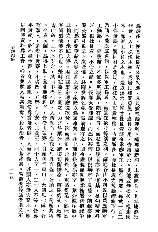杜長春以煎煮樟腦為利 東槎紀略卷四 台灣文獻史料叢刊