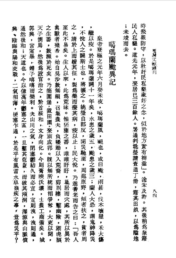 風雷水旱瘯疾皆自然現象 東槎紀略卷三 台灣文獻史料叢刊 -