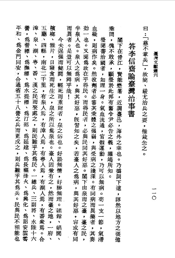 善治國者,如理一身,必審其秉體之強弱,與受病之淺深 東槎紀略卷四 台灣文獻史料叢刊 -