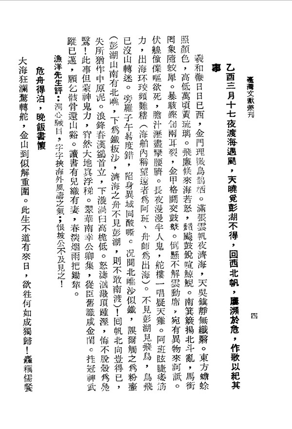 阿班眩睫痿筋力,出海环珓頻難稽 赤崁集卷一 台灣文獻史料叢刊 -