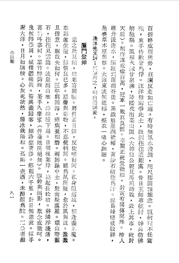 瘴山切避風前毒 赤崁集卷四 台灣文獻史料叢刊 -