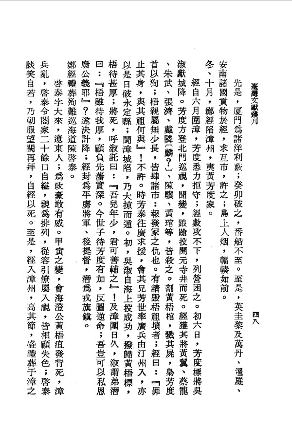 吳淑臨危不亂,後遭墻崩壓死 閩海紀要卷之下 台灣文獻史料叢刊 -