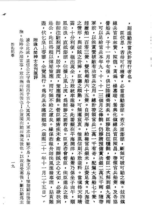 臣滅賊心切但不黯水性懇留居中 靖海紀事上卷 台灣文獻史料叢刊 -