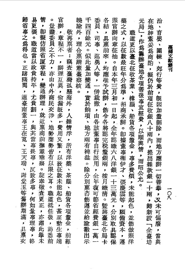 臺北各項釐金仿照洋藥招商承辦 巡臺退思錄卷二 台灣文獻史料叢刊 -