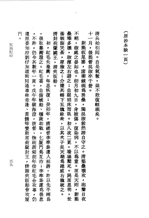 吳淑毅然自守,後遭墻塌壓死 閩海紀略 台灣文獻史料叢刊 -