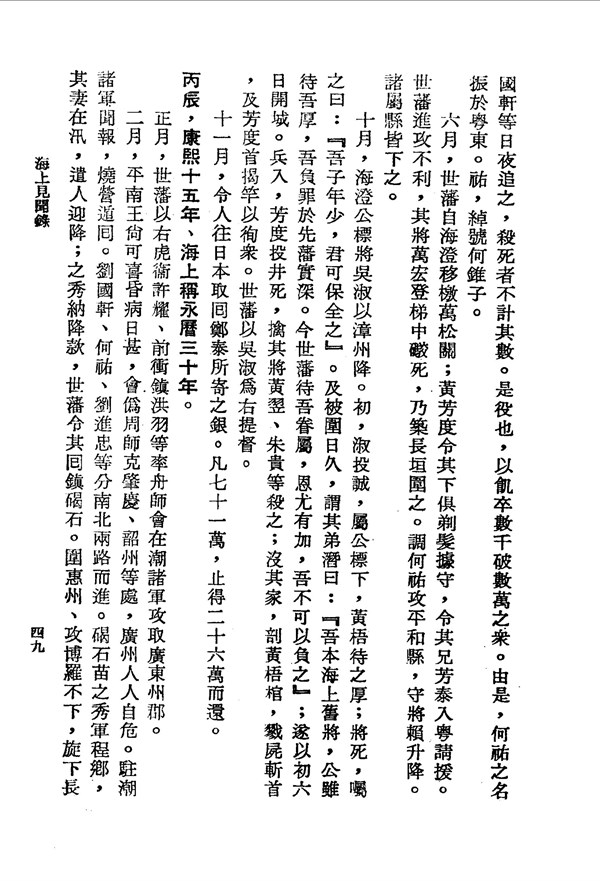 尚可喜昏病日甚,廣州自危 海上見聞錄卷二 台灣文獻史料叢刊 -