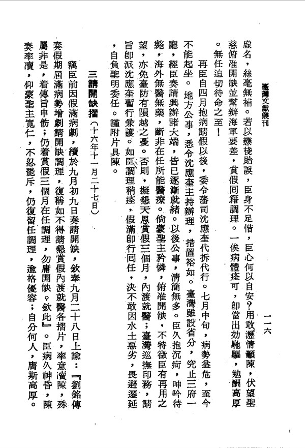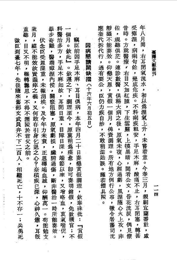 大病後懇請開缺以免誤國 劉壯肅公奏議卷一 台灣文獻史料叢刊 -